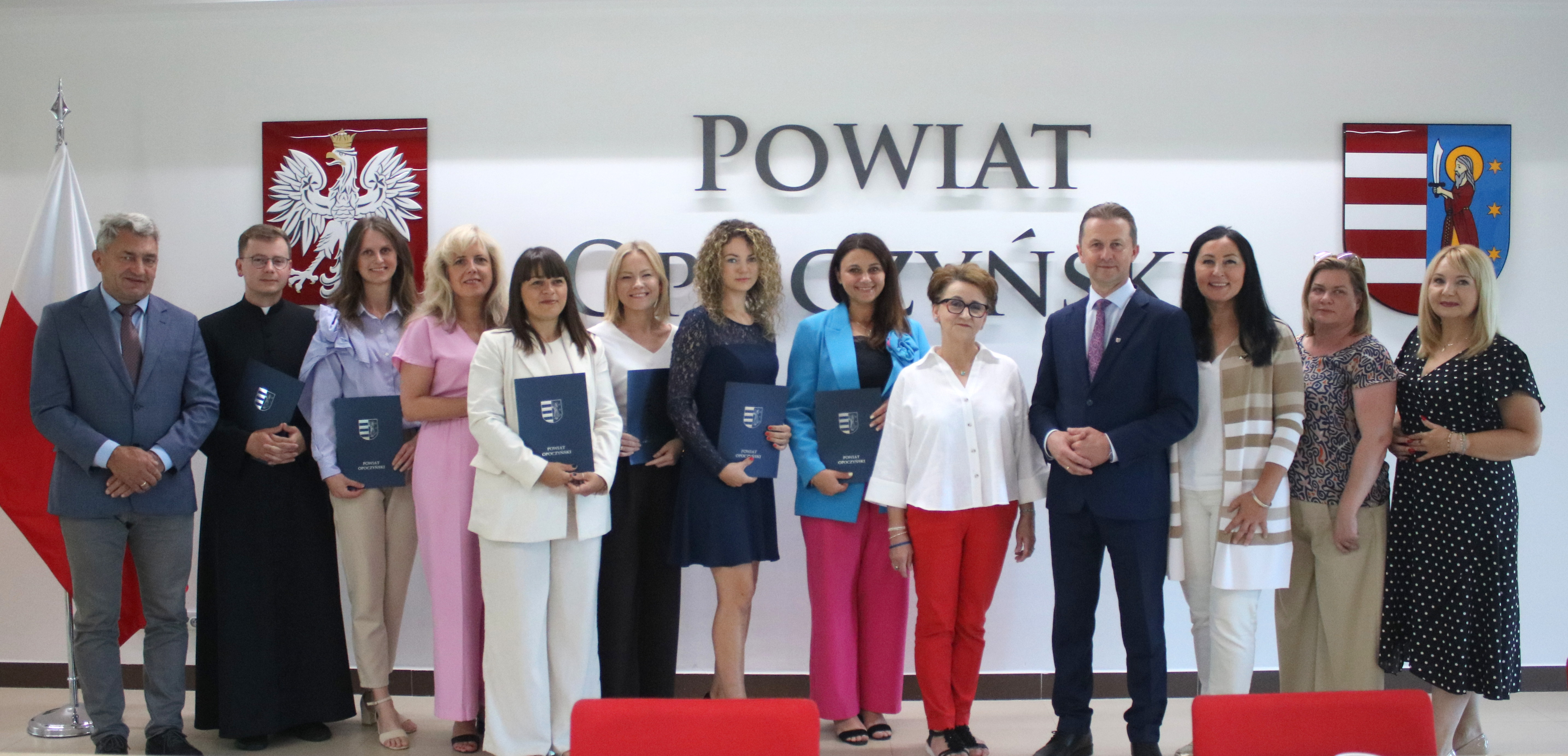 28 sierpnia 2025 r. Starosta Opoczyński – Marcin Baranowski, Wicestarosta – Maria Barbara Chomicz wraz z Sekretarz Powiatu Opoczyńskiego – Magdaleną Zapałacz w obecności Dyrektor I Liceum Ogólnokształcącego im. Stefana Żeromskiego w Opocznie – Pani Anny Pręcikowskiej-Skoczylas, Dyrektor Poradni Psychologiczno-Pedagogicznej w Opocznie – Pani Anny Reszki i Dyrektora Zespołu Szkół Powiatowych w Drzewicy - Pana Mariana Pisarskiego, wręczyli akty nadania stopnia nauczyciela mianowanego.