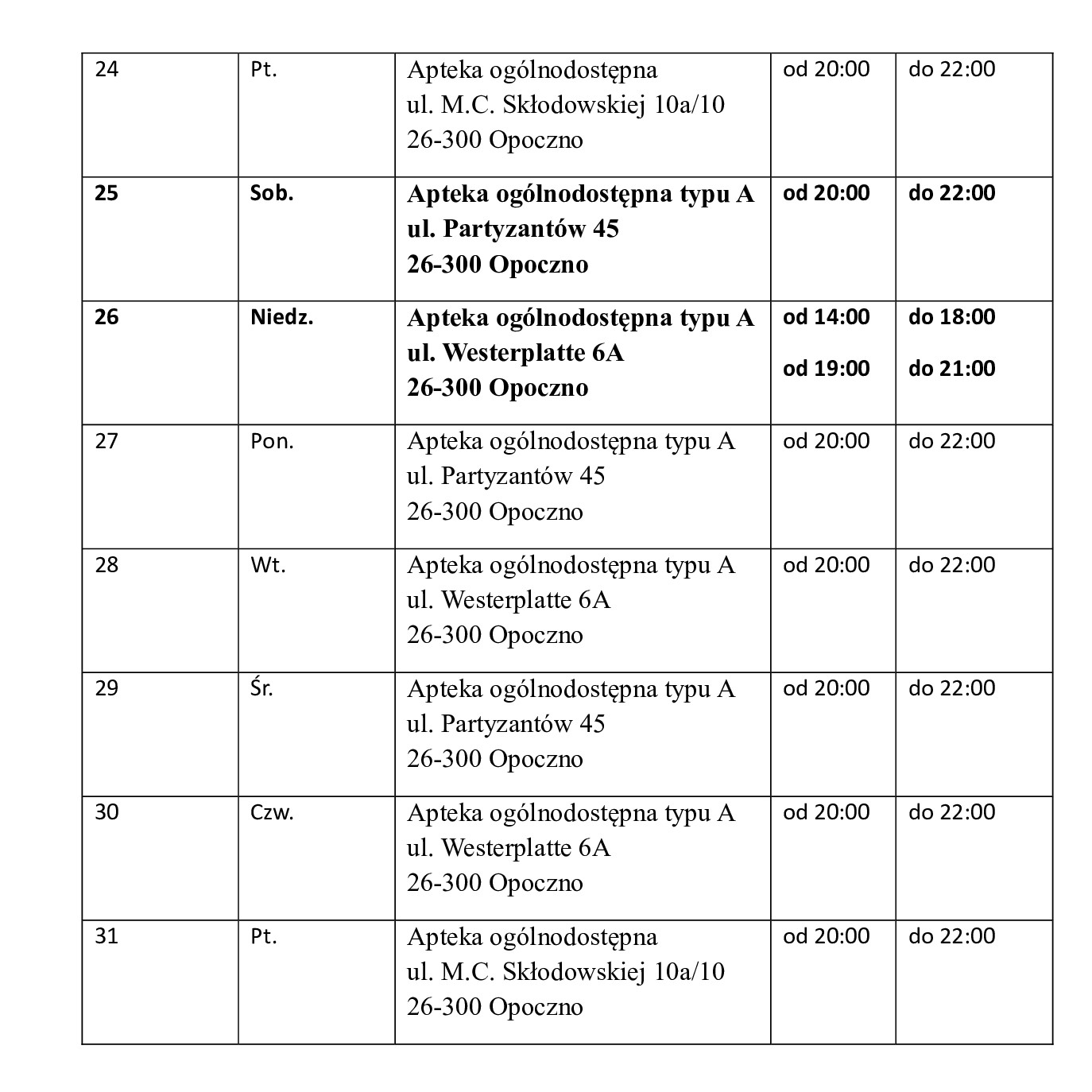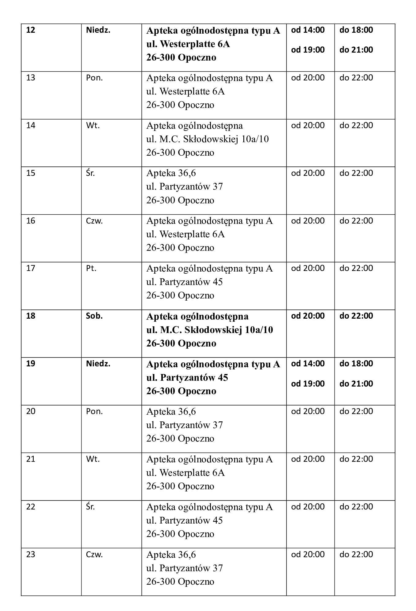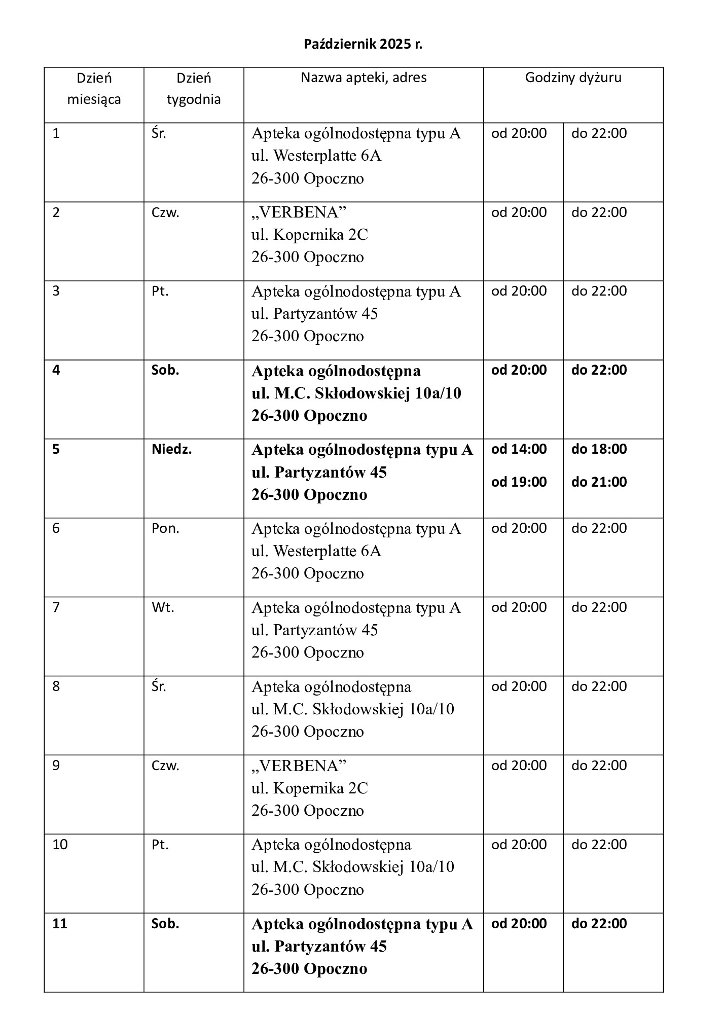 Informujemy, iż od dnia 01.10.2025 r. Apteka Waldemar Sroka Pl. Kilińskiego 19 A 26-300 Opoczno zmienia godziny pracy.