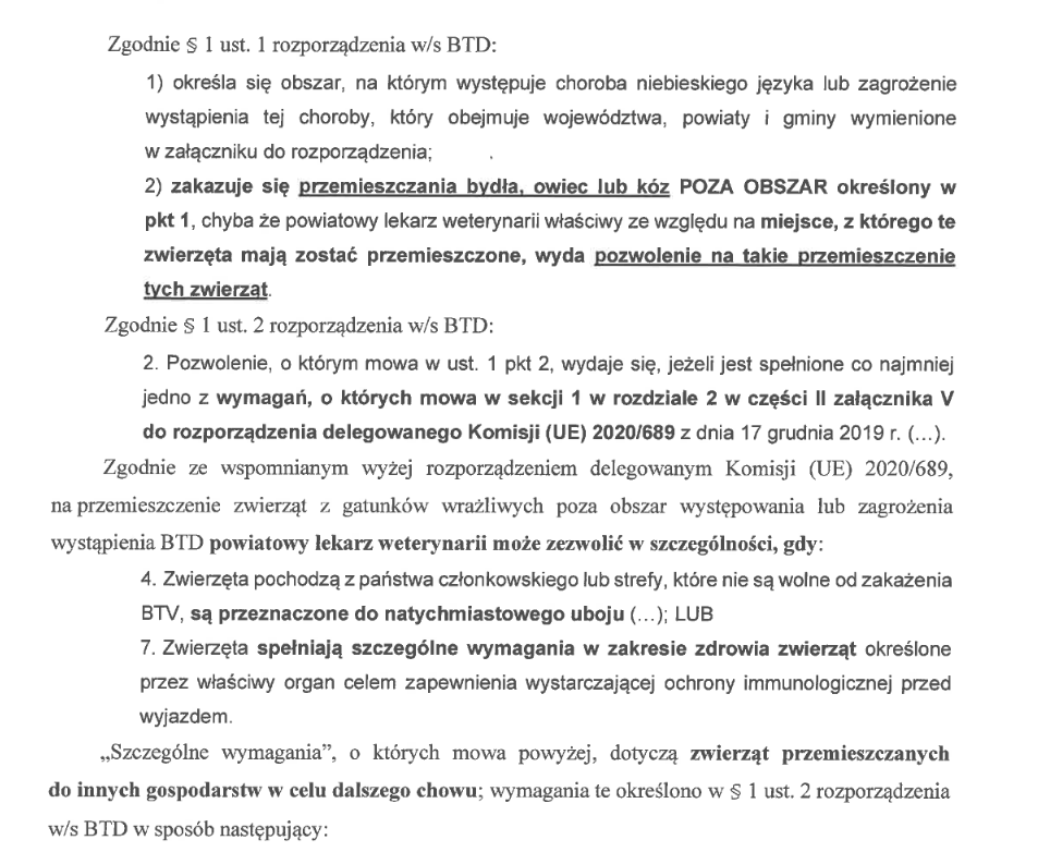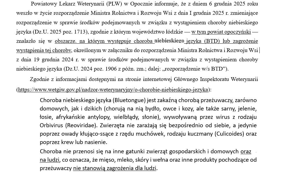 Wystąpienie choroby niebieskiego języka (BTV) u zwierząt w województwie łódzkim
