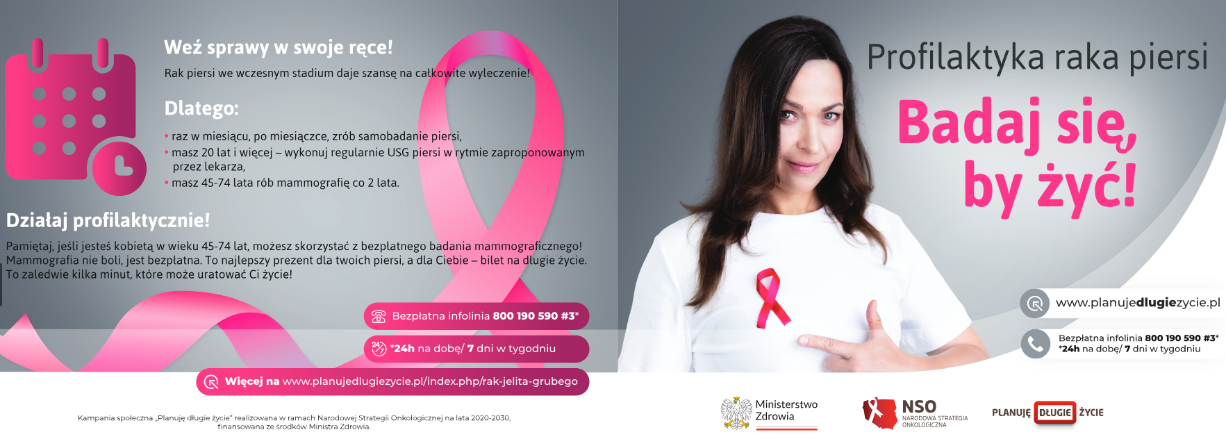 Regularna profilaktyka raka piersi – samobadanie raz w miesiącu i mammografia co dwa lata – mogą uratować życie!