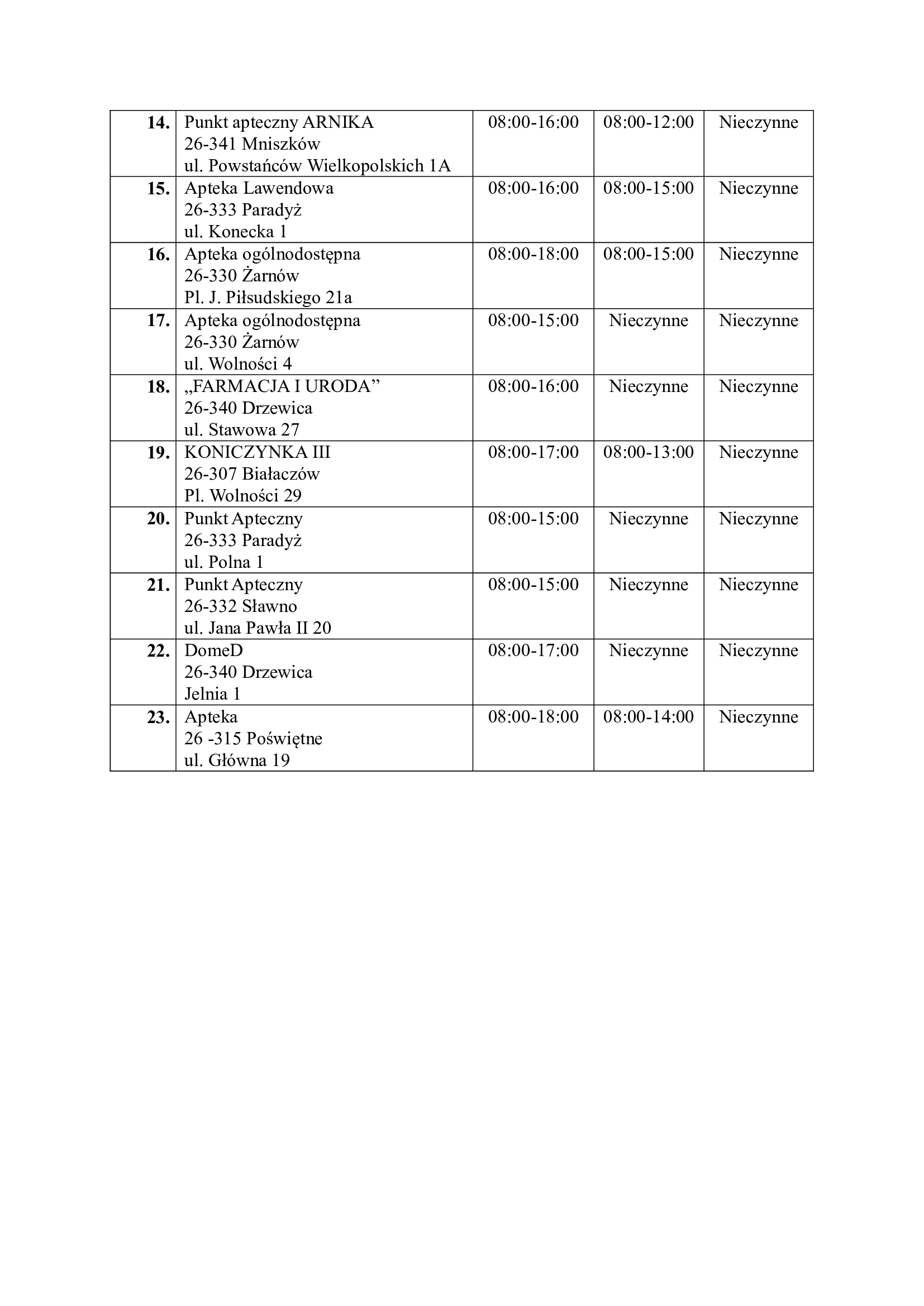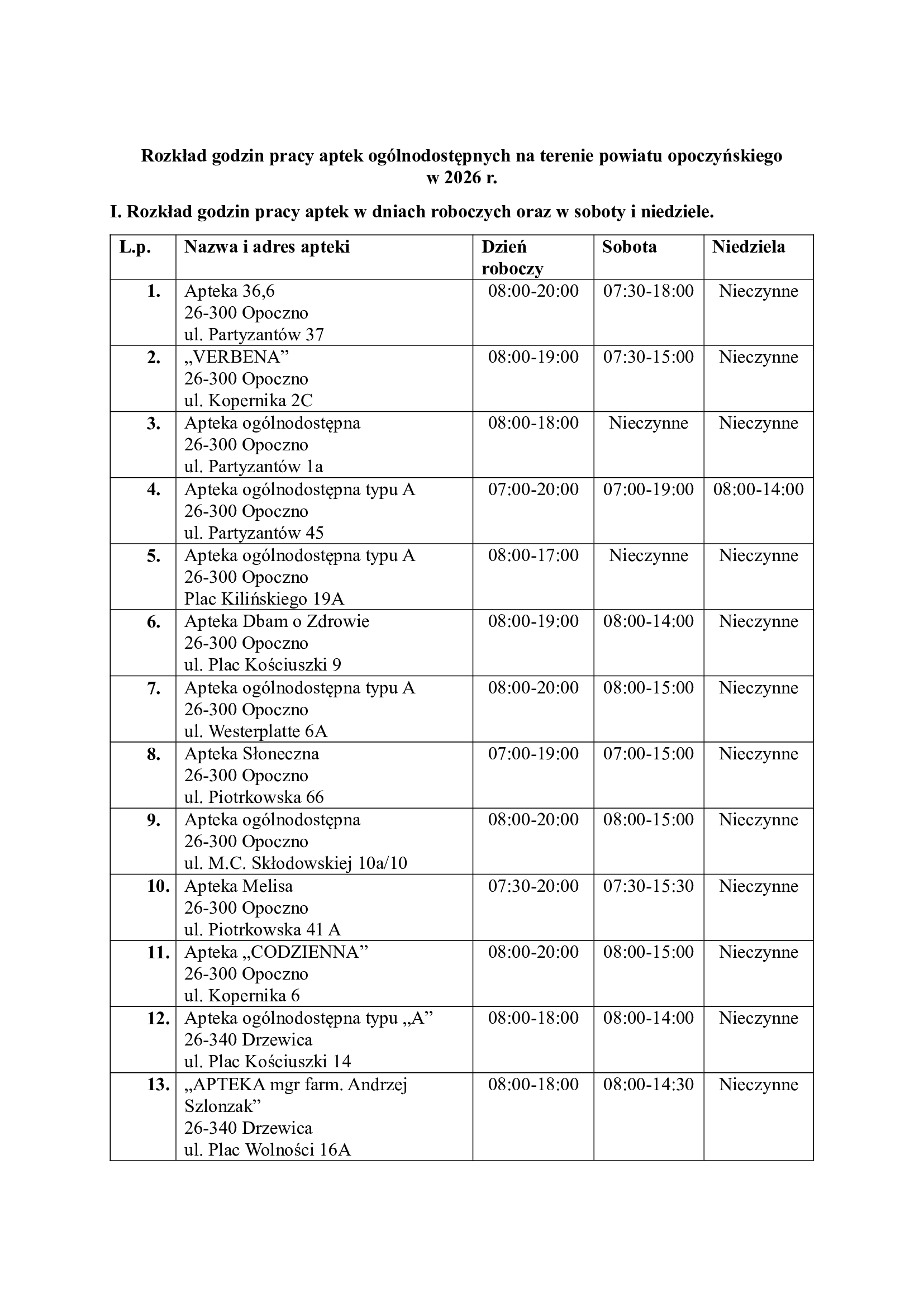 Godziny pracy aptek w powiecie opoczyńskim w 2026 roku.